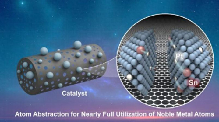 天津大学团队偏不信邪。巩金龙教授带队,整整磨了近十年,搞出了“原子抽提”策略:在颗粒表面安排“磁铁”,精准把埋在里面的铂原子抽到外面。这个“磁铁”就是锡原子。由于体型大,它只能窝在表层,却有着对铂的强吸引力。结果就是,深埋的铂原子被一层层“拎”出来,乖乖站在表面排队干活。想象一下,以前是几百个工人,只有几十个在前线搬砖;现在是每一个人都到一线。生产效率客新策略,直接翻天。